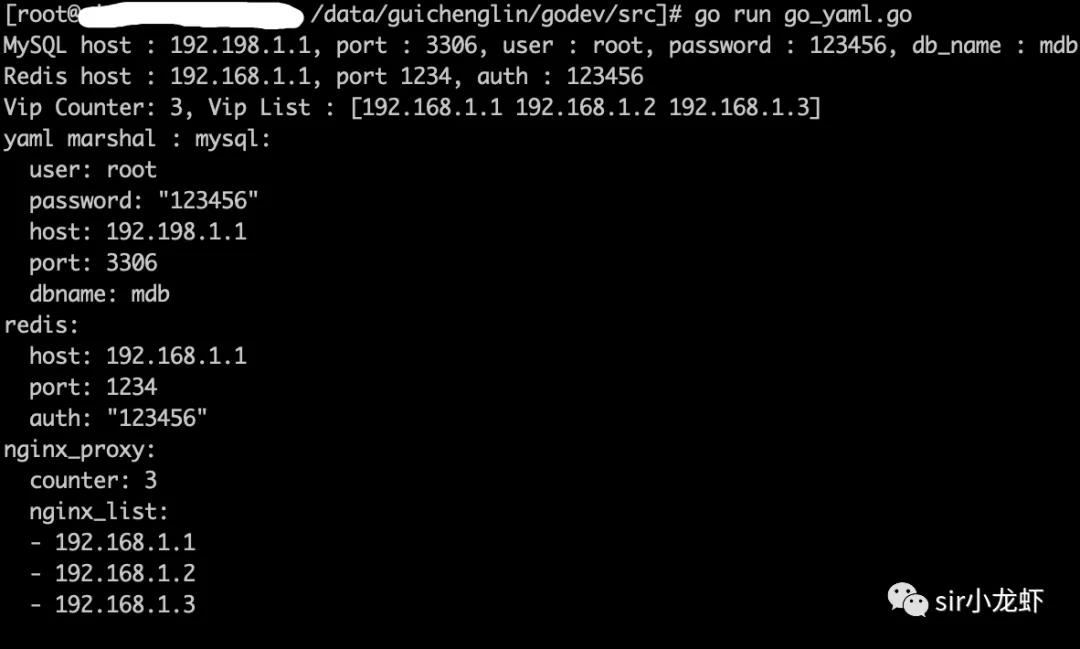 fmt.Printf("Redis host : %s, port %d, auth : %s\n",